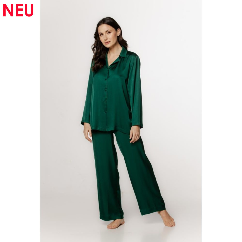 - fließend locker sitzendes Pyjama-Set bestehend aus Hemdbluse und gerader Hose