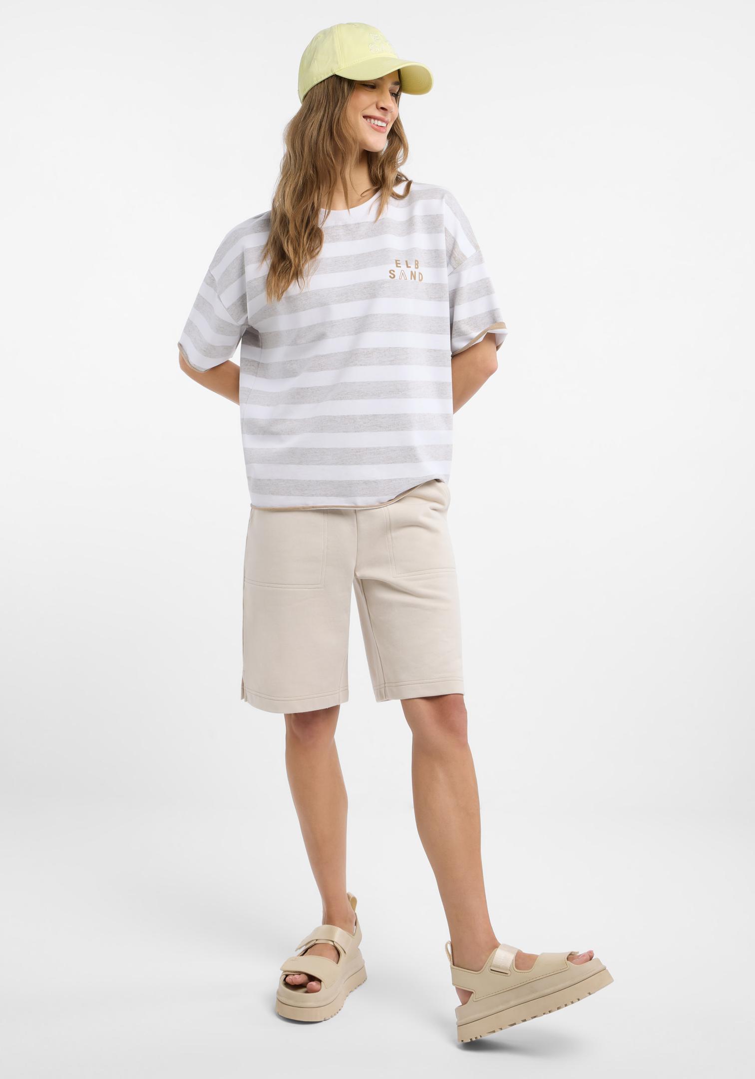 ELBSAND Gry T-Shirt camel/bright white stripes (95% Baumwolle, 5% Elasthan) S