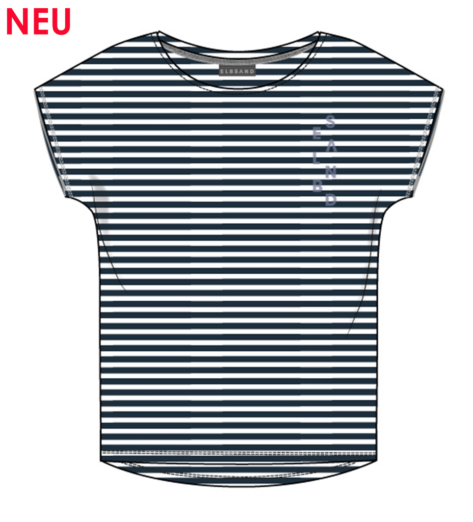 ELBSAND Selma T-Shirt coldwater+bright white stripes (50% Baumwolle, 50% Polyester)