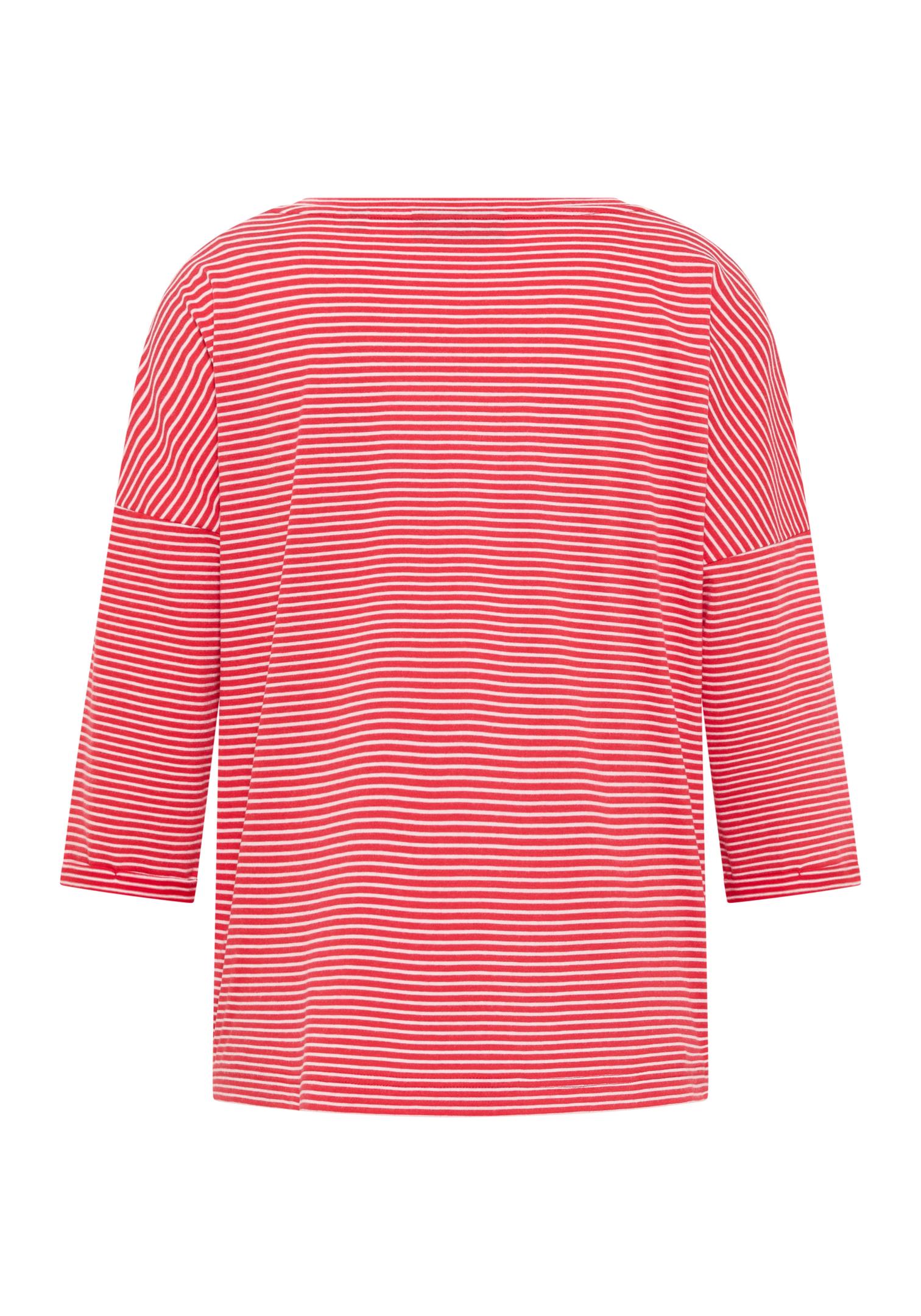 ELBSAND Veera T-Shirt 3/4-Arm barberry/cloud white stripes (50% Baumwolle, 50% Polyester) L