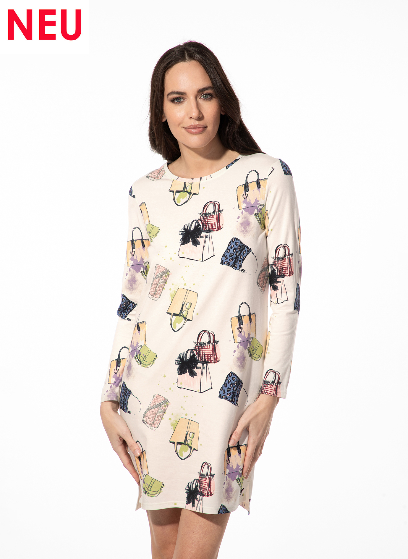 SHORT STORIES 622008 Sleepshirt Langarm antique white/print (47% Baumwolle, 47% Modal, 6% Elasthan)