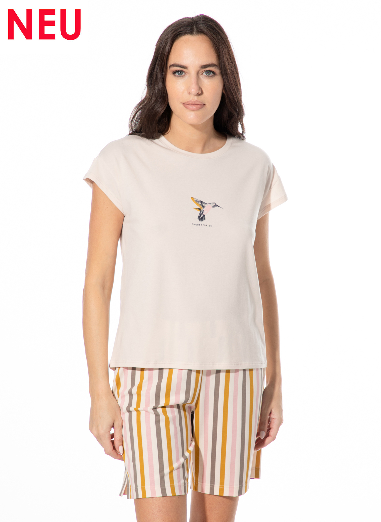 Die Loungewear-Teile eignen sich neben Nachtwäsche wunderbar auch als Freizeitbekleidung und lassen sich untereinander beliebig zu vielen Outfits kombinieren. Die aktuelle Frühjahr-Sommer-Kollektion präsentiert sich mit romantischen oder frechen Prints in den gewohnt hochwertigen und hautfreundlichen Naturmaterialien, dazu schöne Unis zum Kombinieren.