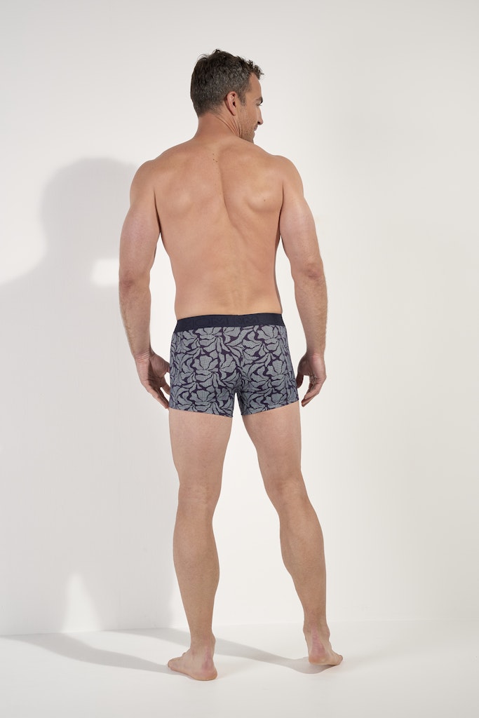Boxer mit maskulinem Muster in besonders weicher Qualität und der patentierten HO1-Funktion: der horizontale Eingriff.